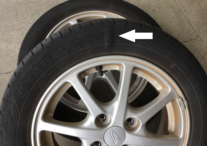 衝撃などが原因でタイヤ内部のカカースコード