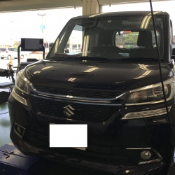 車体にキズが有ましたのでお客様にお伺いしたところ、少し前に強く縁石に乗り上げてしまったとのことでした。アライメントテスターにて測定したところ、乗り上げてしまった側のトゥーに大きな狂いが生じていました!メーカー指定の基準値に調整し作業終了となりました!!