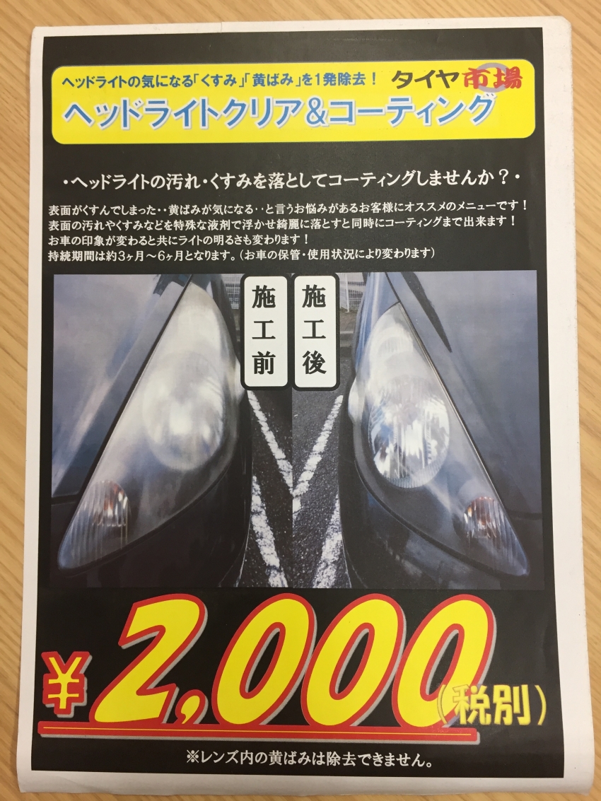 おすすめメニュー ヘッドライトクリア&コーティング!!