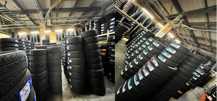 店内にスタッドレスタイヤ