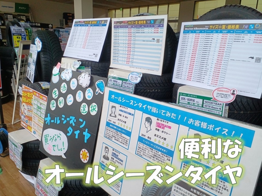 オールシーズンタイヤ各種取り扱っております!アウトレットセールも開催中♪