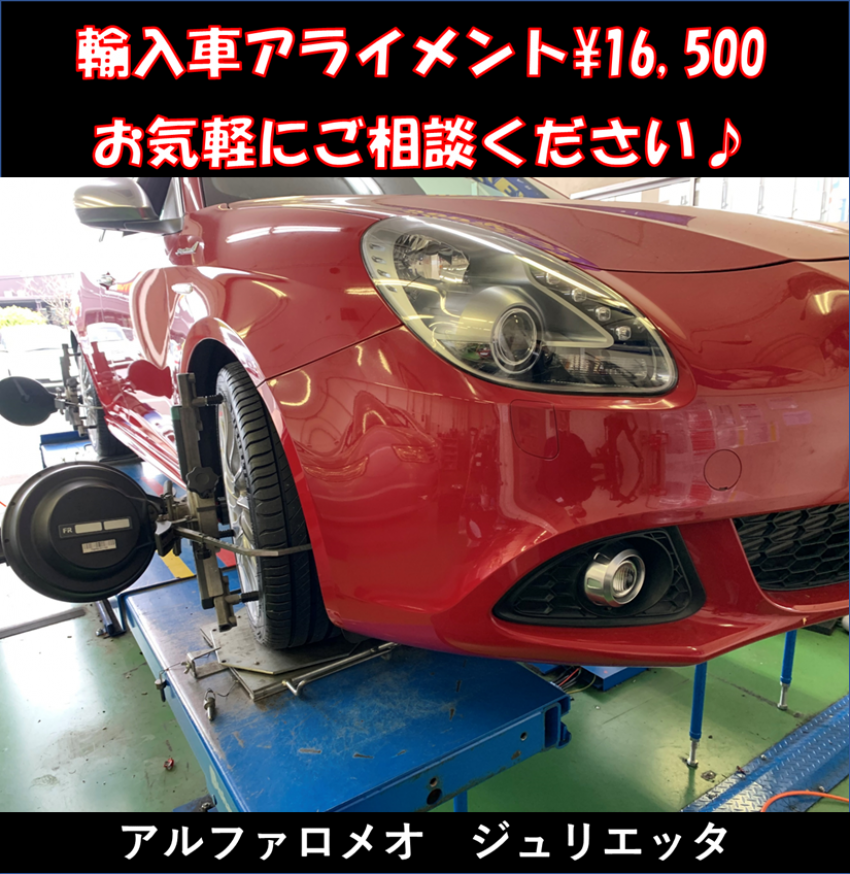 イタリア車‼ アルファロメオジュリエッタアライメント調整‼