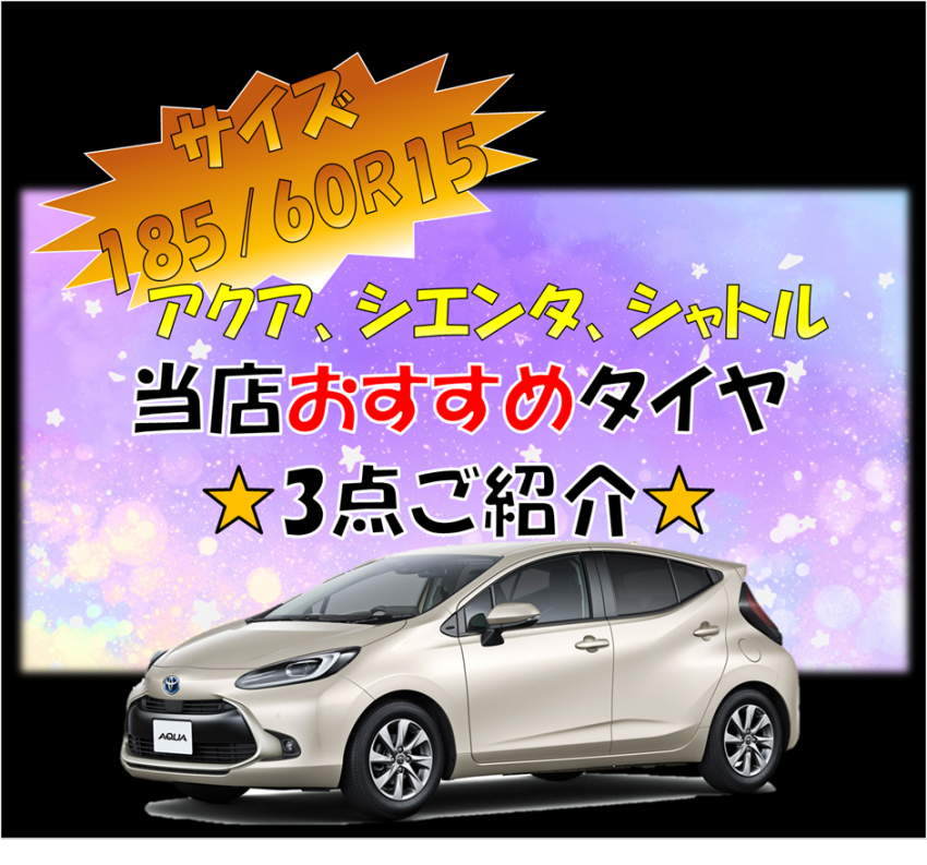アクア、シャトル、シエンタ等に!185/60R15のオススメタイヤ!
