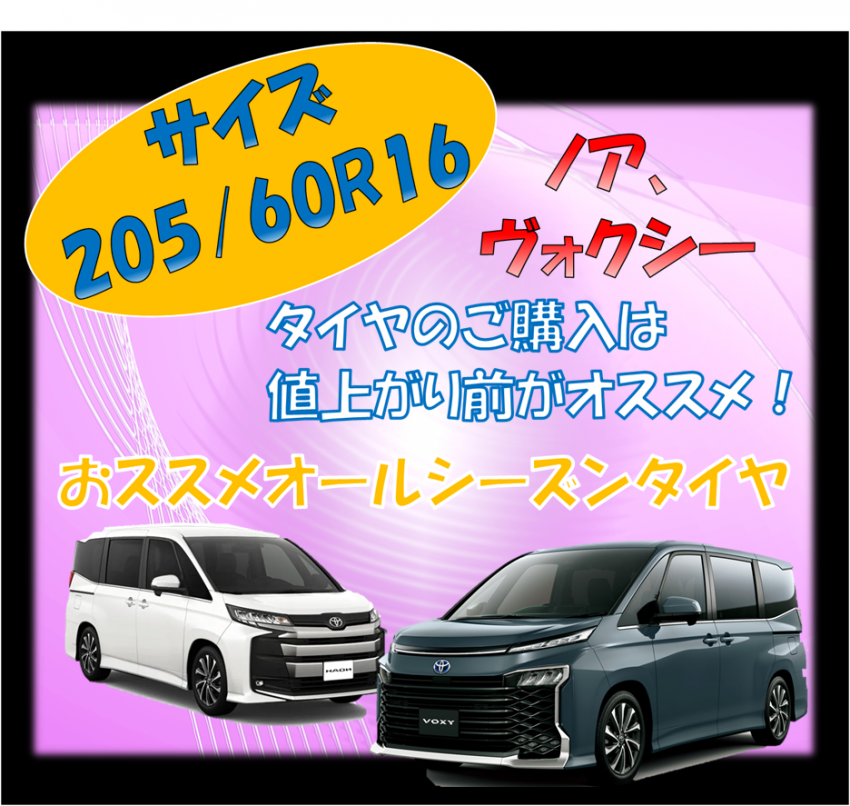 本日はノア、ヴォクシーなどに装着可能な205/60R16のオールシーズンタイヤを3種類ご紹介致します!