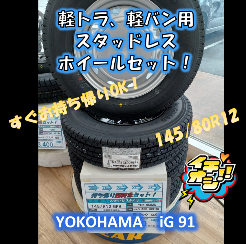 軽トラ、軽バン用のスタッドレスタイヤセットお探しなら!