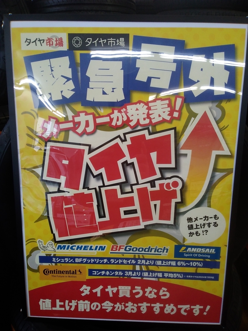 2月、3月タイヤの値上げを発表