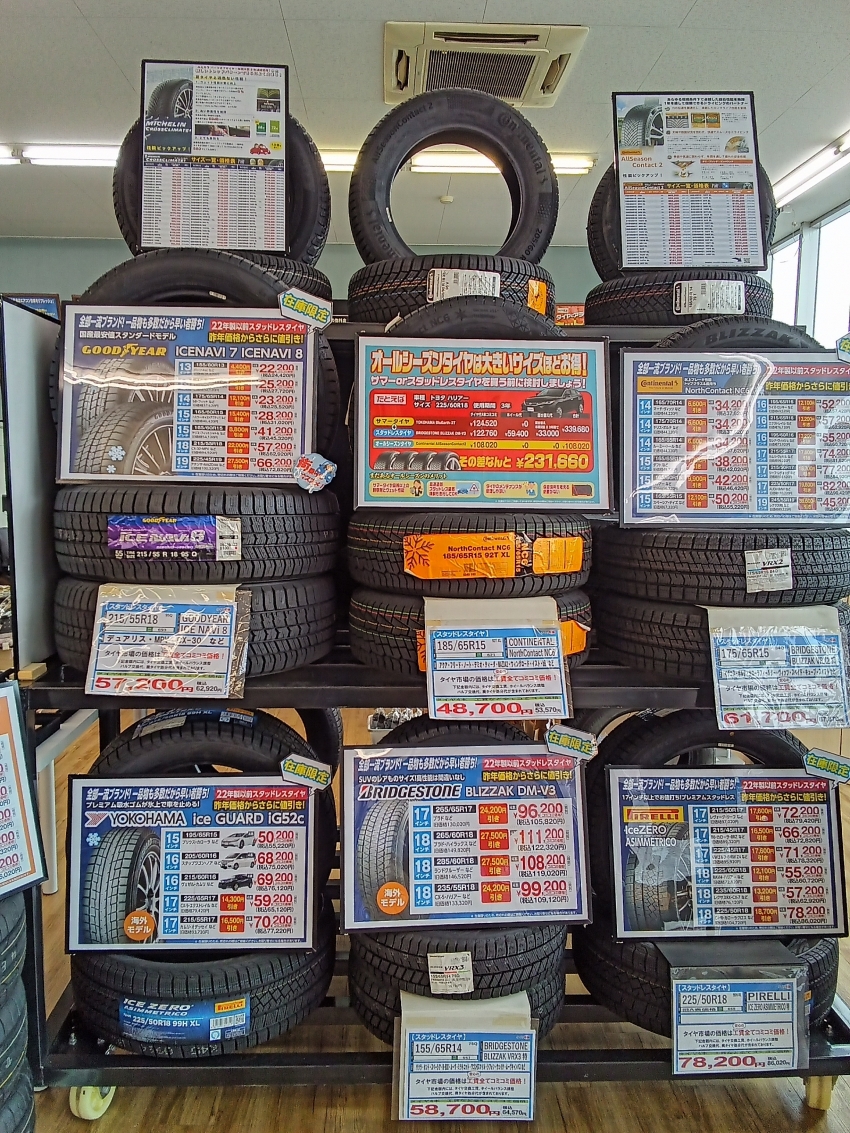 スタッドレスタイヤ、オールシーズンタイヤを販売中です。