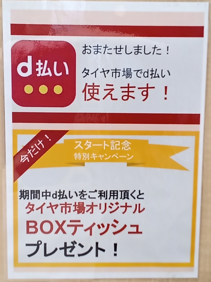 いよいよタイヤ市場ではメルペイ。d払い使えるようになります‼