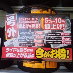 春からタイヤの値上がりが発表されていますので