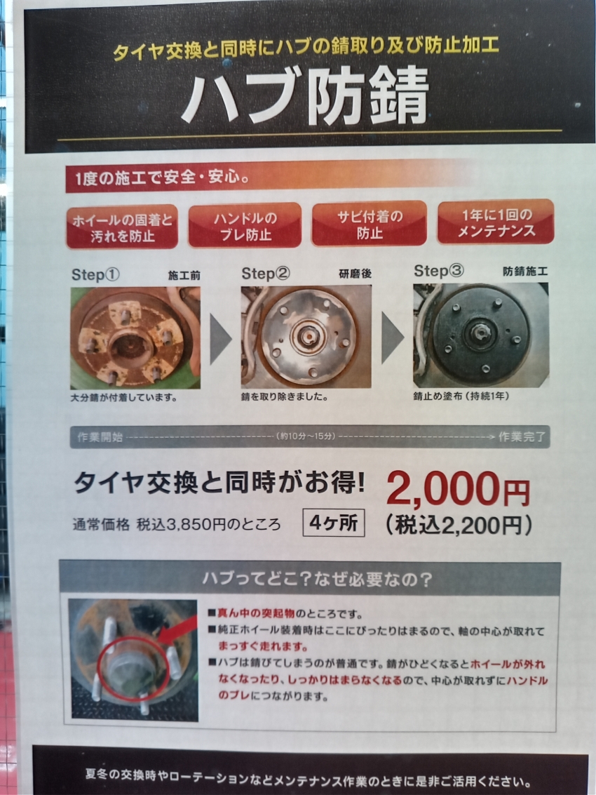 タイヤ交換と一緒におススメな【ハブ防錆】について。
