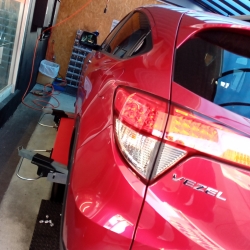 お車の走行は、トウ、キャンバーを測定し、