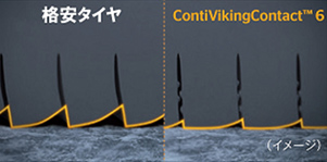 高い氷上性能で絶大な人気を誇ったコンチネンタル バイキングコンタクト6と同じトレッドパターンを継承。