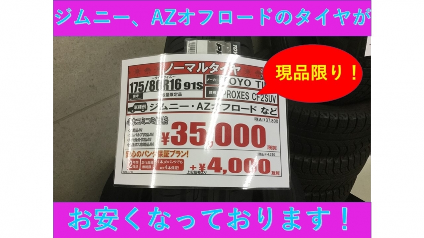 ジムニー、AZオフロードのタイヤが安い!(*゚▽゚)ノ