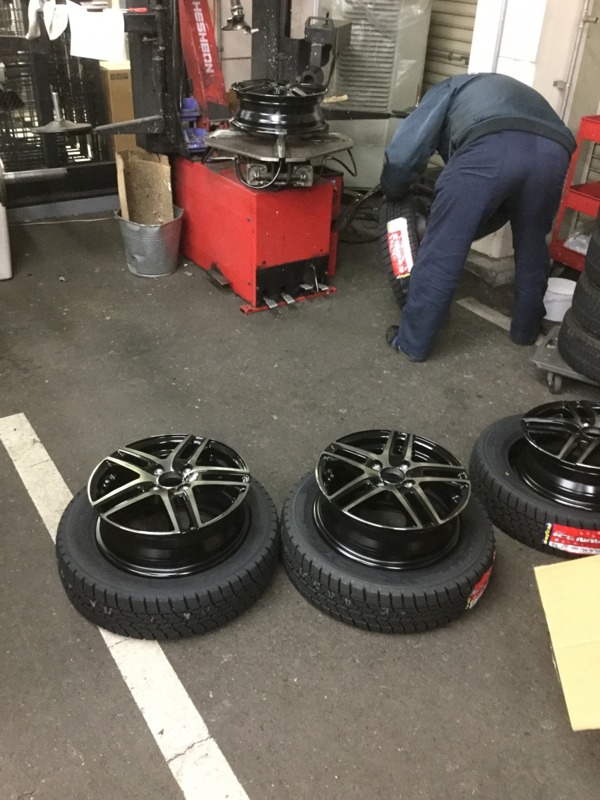 《写真は当店のスーパー作業員が明日の作業のスタッドレスを準備している処です❢❢》