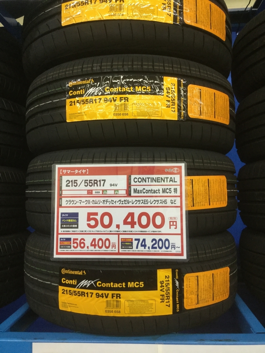 世界4大メーカーのCONTINENTAL製のMaxContact MC5 215/55R17がお買い得❢❢❢❢❢