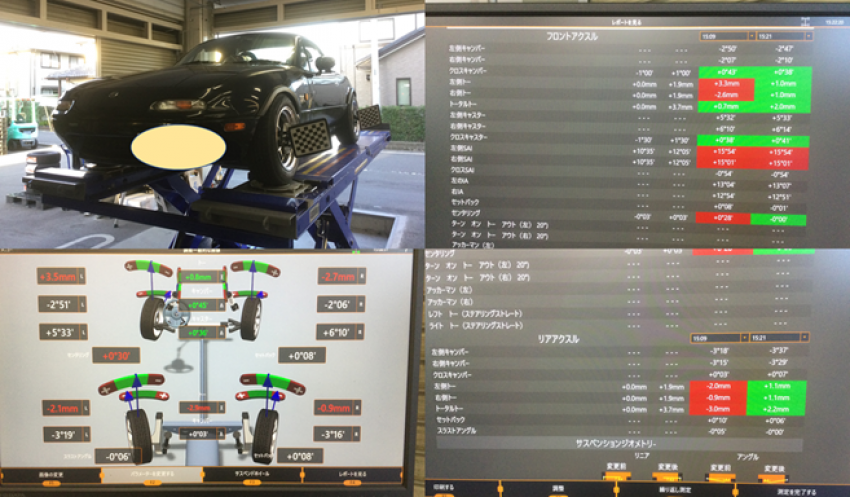 マツダのロードスターのアライメント調整を実施させて頂きました(^^♪