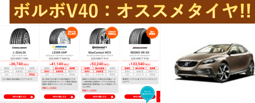 今回ですが、ボルボV40にオススメの夏タイヤ(225/45R17)をご紹介致します!(^^)!