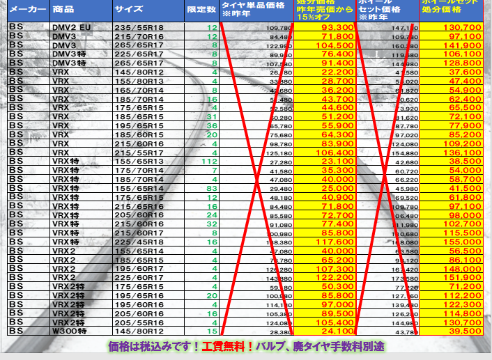 今回、私が皆様にお知らせしたいのは旧年製スタッドレスについてです!!