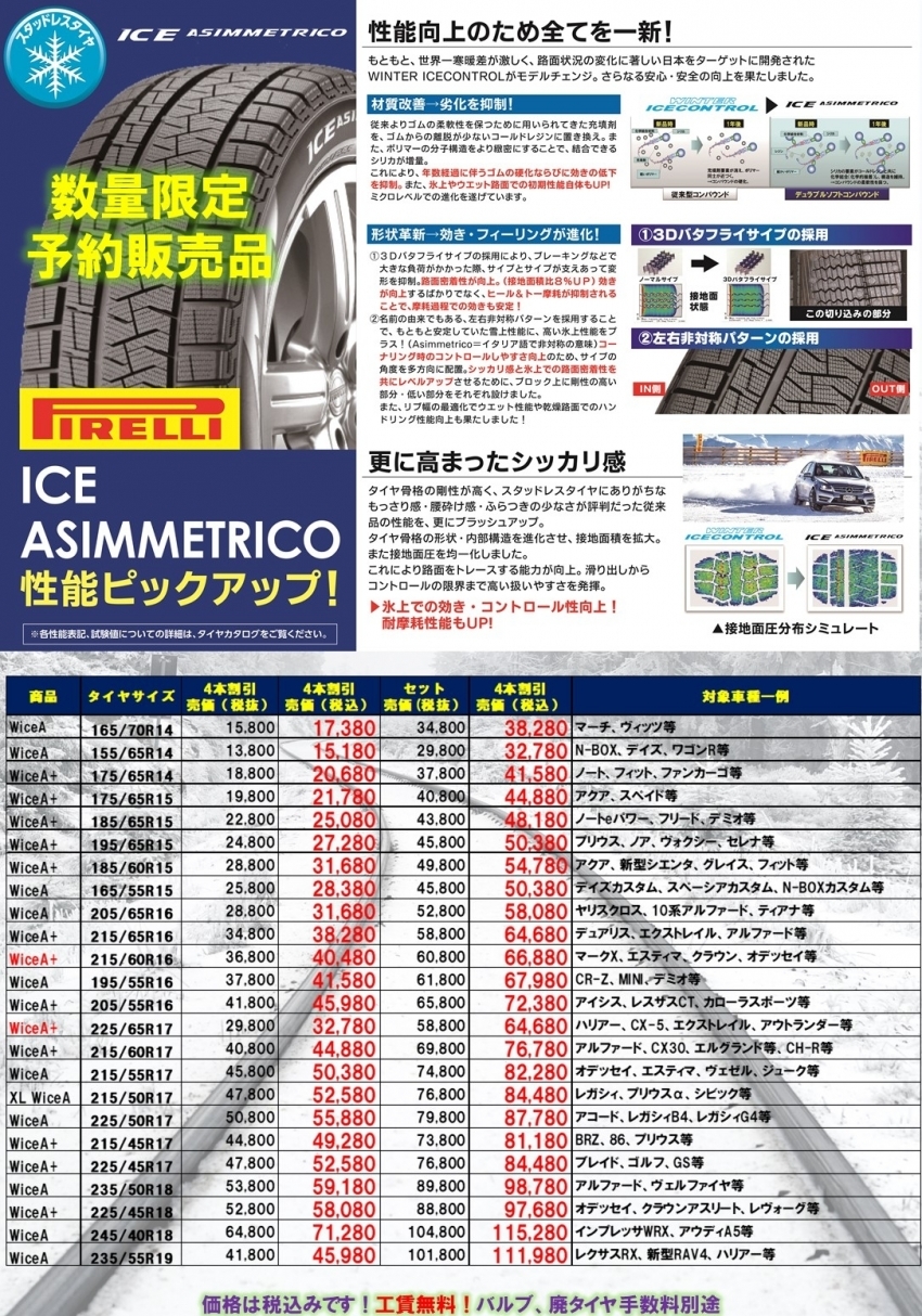 上記の商品以外にもお買い得な商品は盛り沢山となっておりますので、今年スタッドレスの購入をご検討中の方は、是非一度当店に足を運んでみて下さい(^^♪