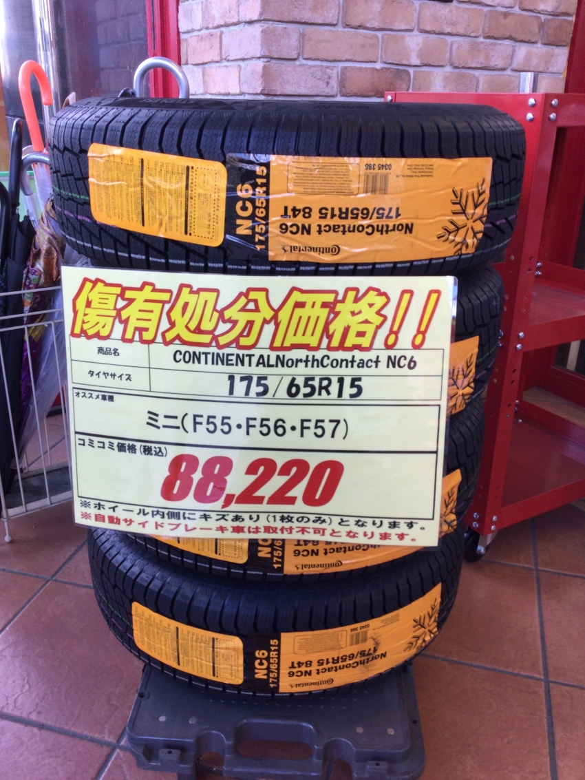 本日ですが、mini(F55、F56、F57)適合サイズ175/65R15(電動自動サイドブレーキ車は装着不可となりますの訳アリスタッドレスタイヤセットをご紹介致します!(^^)!