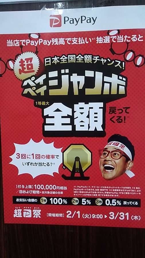更に当店は明日2/1から始まるpaypayジャンボの対象店舗となっております!(^^)!