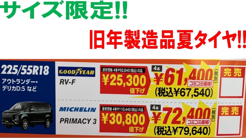 【サイズ限定】旧年製造品夏タイヤのご紹介!!パート4