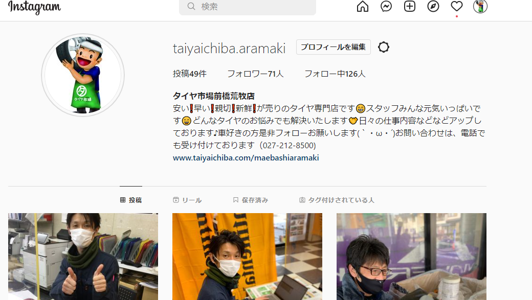 最近、タイヤ市場荒牧店はInstagramのアカウントを開設致しました!(^^)!