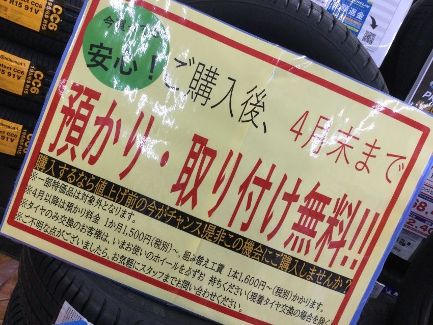 4月末までご購入頂きました夏タイヤはお預かり出来ます!(=゚ω゚)ノ