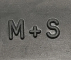 M+Sマークの有るタイヤは、ぬかるんだ道や浅雪に対応できるよう、一定以上の溝の深さなどを持つタイヤに表示されています。 しかし走行性能を定義した規格ではないため、これだけでは氷雪上での性能はほとんど期待できません!!