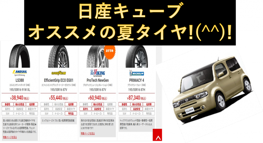 本日は日産キューブにオススメの夏タイヤ(195/55R16)をご紹介致します!(^^)!