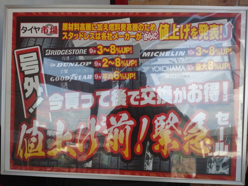 各メーカー値上げ時期は多少違いますが早い所は9月よりの値上げが...つまり...