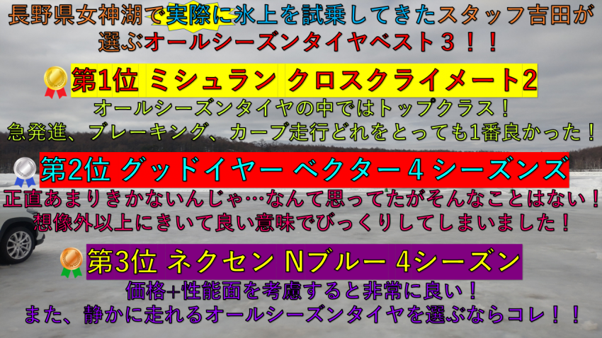 スタッフ吉田が実際に乗ってオススメしたいオールシーズンタイヤベスト3!