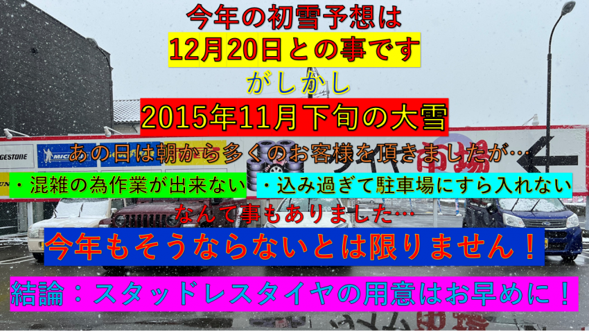 そうなる前に早めにスタッドレスタイヤの購入、予約を済ませておいた方がいいかもしれませんね?(=゚ω゚)ノ