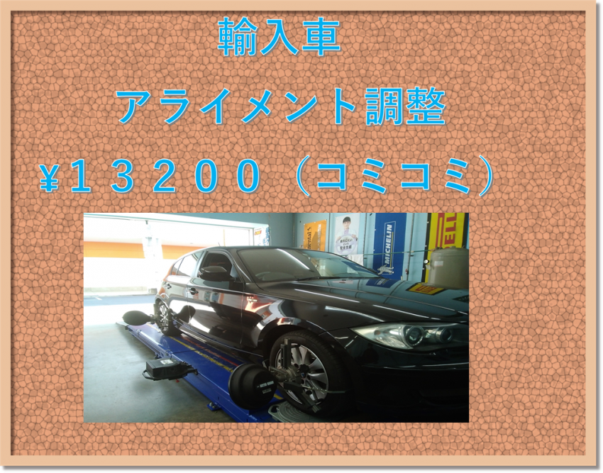 軽・普通車・輸入車・SUVのアライメント調整 お安いですよ(^_-)-☆