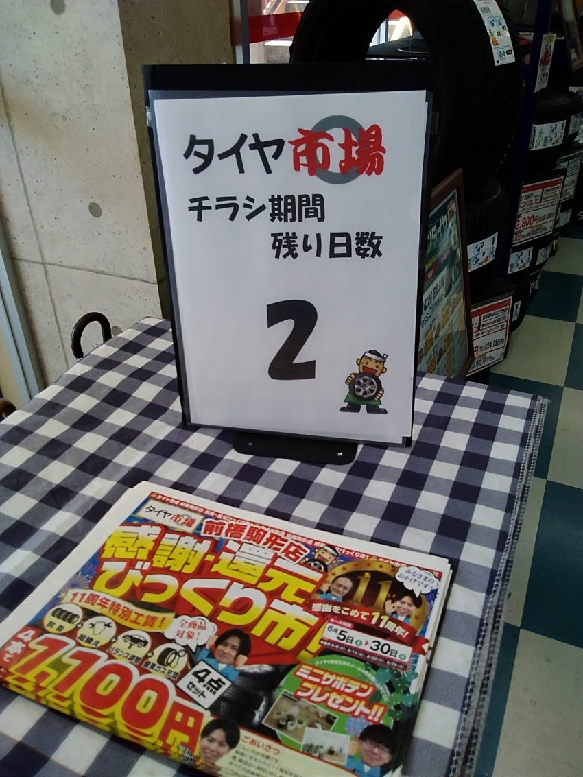 タイヤ市場前橋駒形店限定の11周年祭、セール期間あと2日です!!!