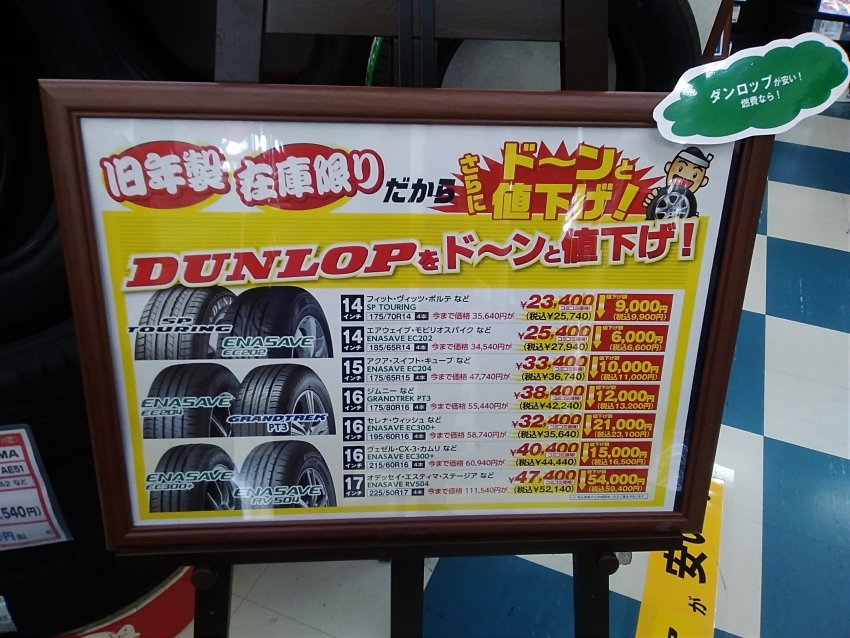ダンロップ・トーヨー・ヨコハマなどのタイヤがとても安く手に入るチャンスです!!