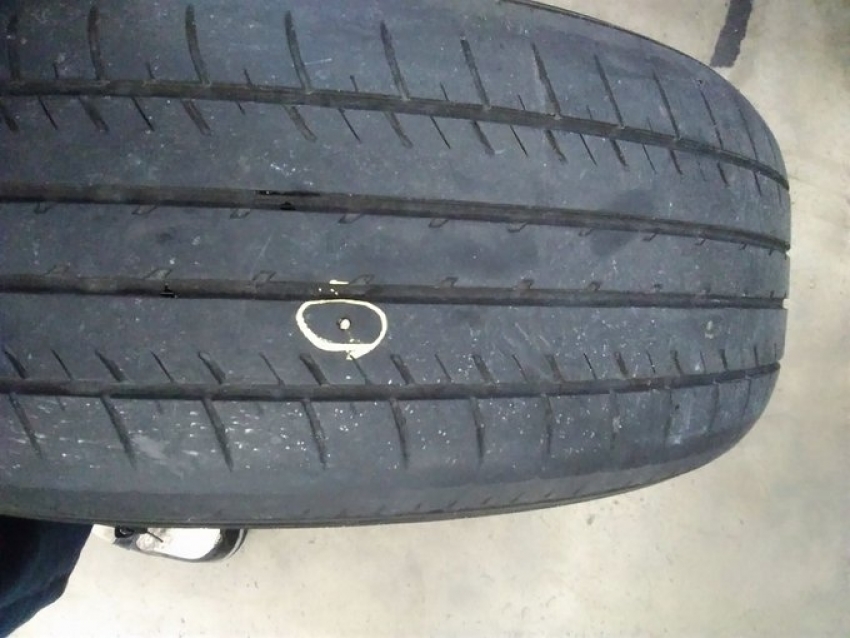 上記写真はパンクしているタイヤです(。-`ω-)