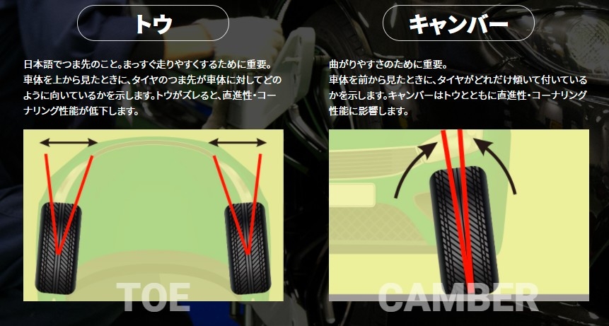 アライメントは簡単にいうとタイヤの角度を治す作業です!