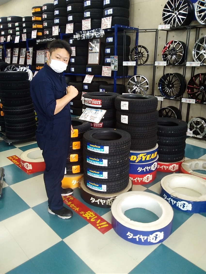 スタッドレスを軸にタイヤを店内に陳列していきます(^^