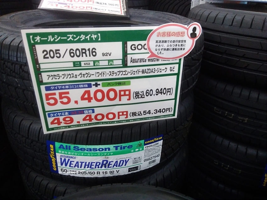 ステッカーにも記載がある通り季節を選ばないオールシーズンタイヤです(*^_^*)