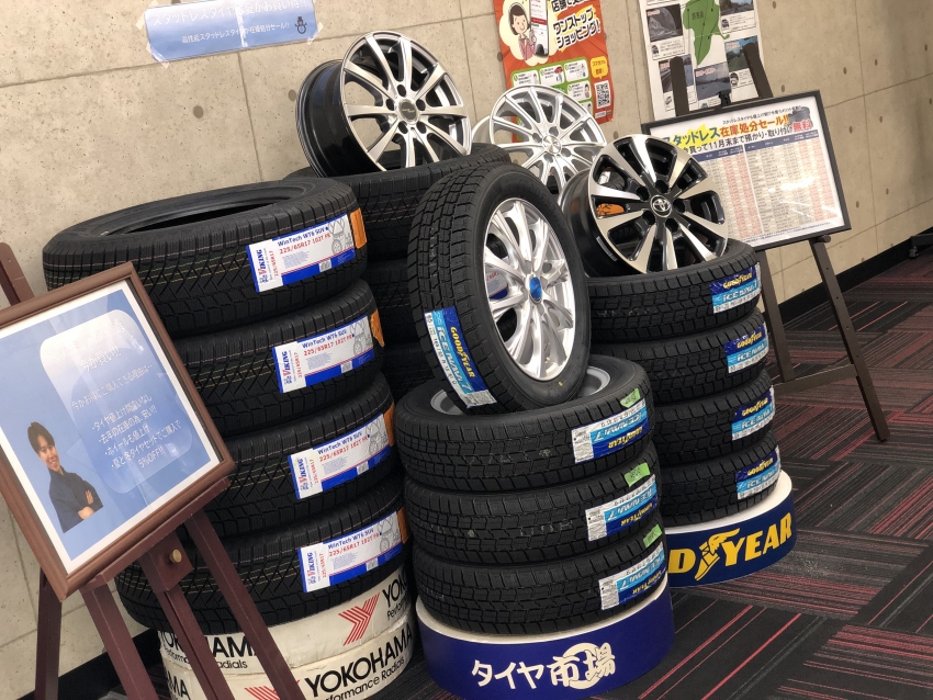 最近寒い日が続き冬が来たと思いスタッドレスタイヤ店内に出しちゃいました(^O^)