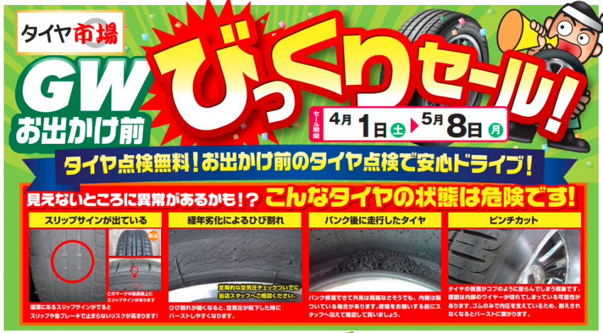 タイヤ市場 びっくりセール開催中!!!