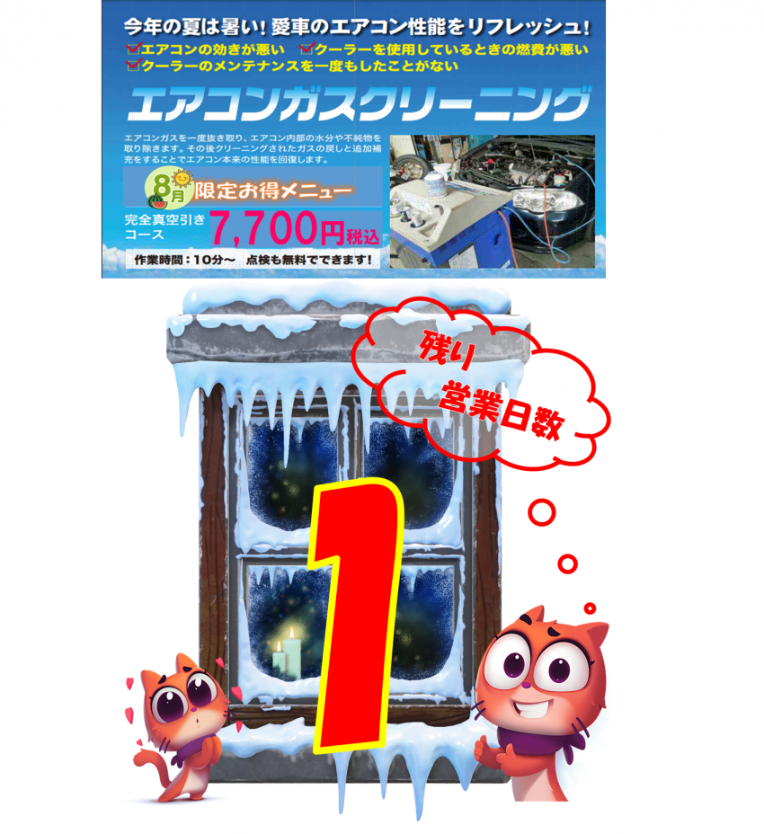 A/Cガスクリーニングキャンペーン本日最終日です!!