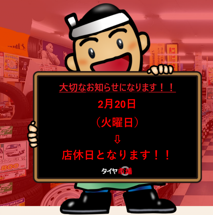 明日2月20日の火曜日は休日となっております!