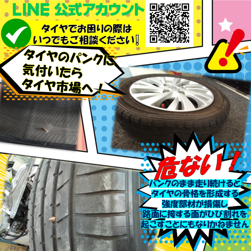 当店でもタイヤ、足回り点検を行っております、是非ご利用ください(^▽^)
