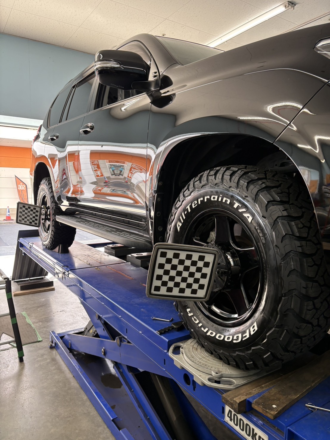 ただし、今回のプラドのような大型SUVや、通常のリフトで上がらない特殊車両の場合は