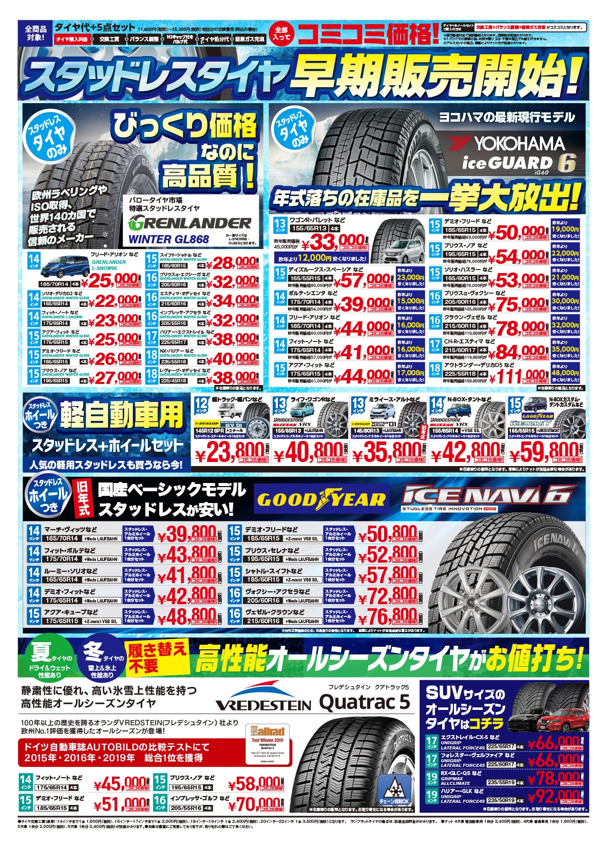また、セール特典としてスタッドレスタイヤをご購入されても11月末まで無料でお預かりしております。