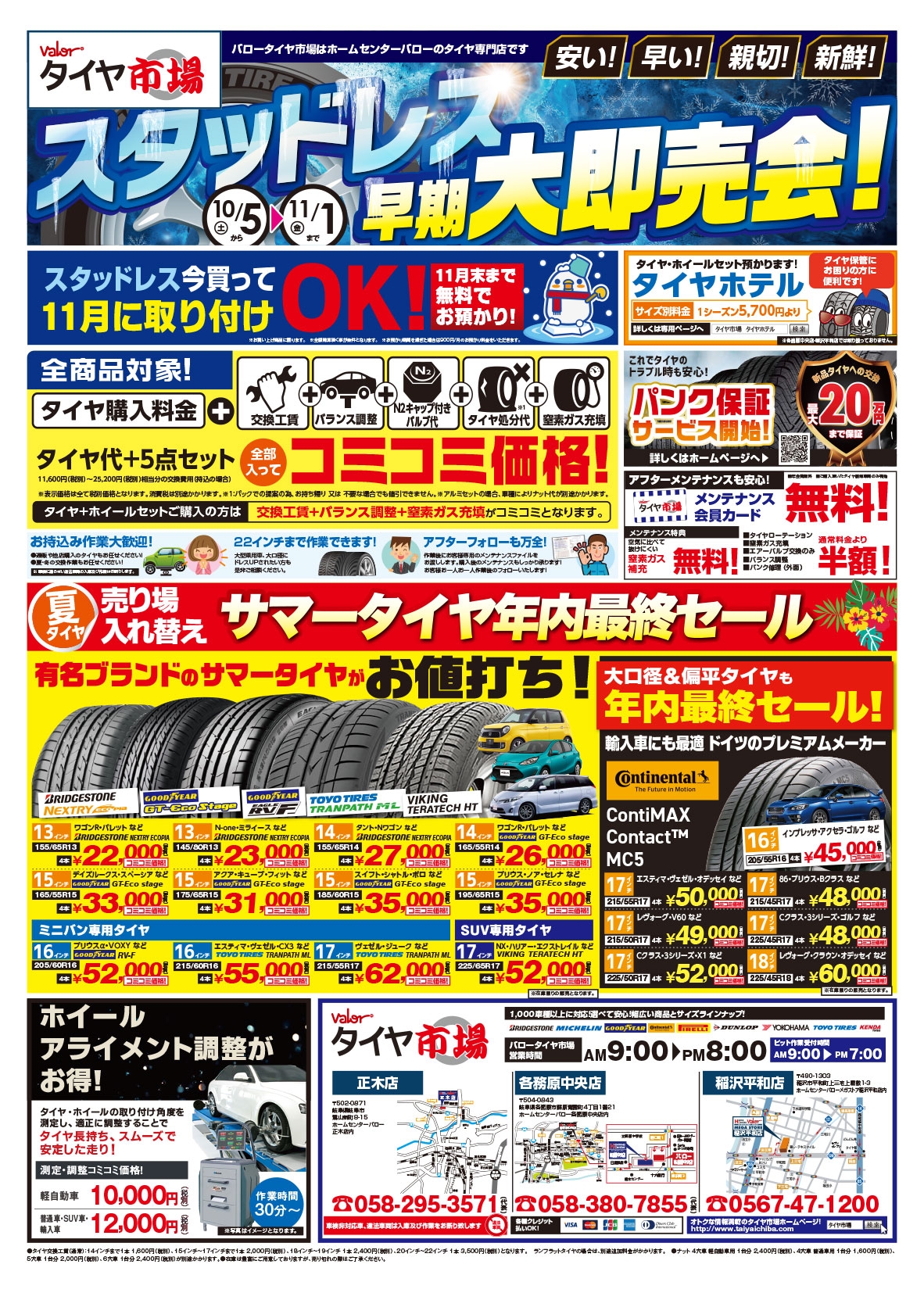 また、サマータイヤも一部ですが年内最終セールを同時に開催しております。
