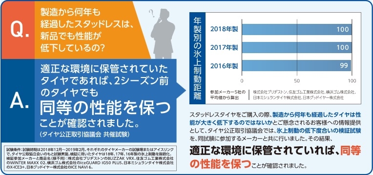 Q1 大丈夫です!!3年間は新品と同等の性能を保つことがタイヤ公正取引協議会で確認されています。