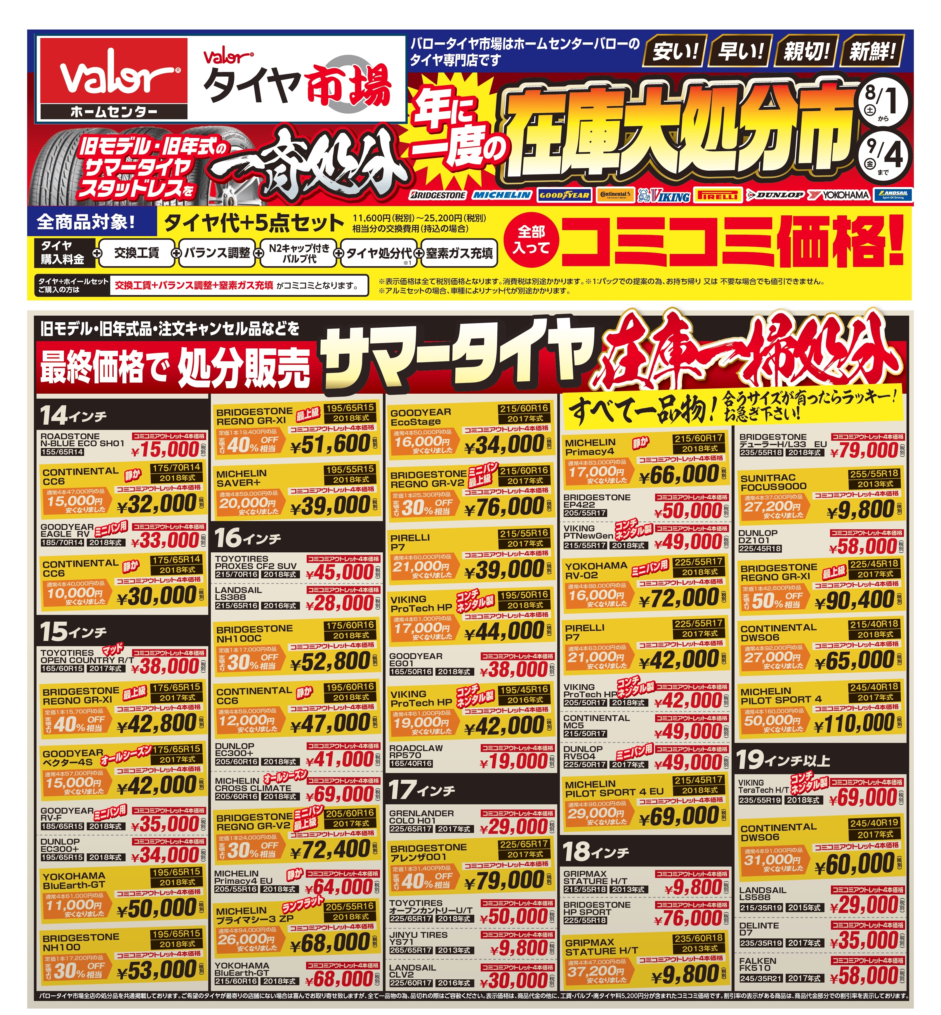 【残りわずか】旧年モデル・旧年製サマータイヤ!!